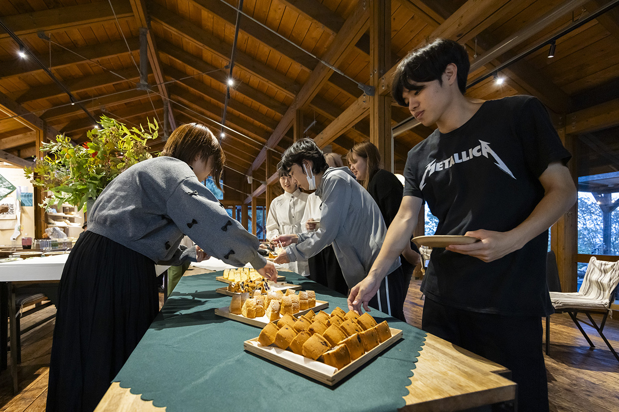 ギャラリーツアー終了後に会場をコミュニティスペース「結」に移し、軽食を交えて歓談をお楽しみいただくレセプションパーティを開催します。